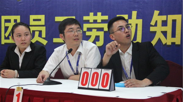 当天大赛按工程设计成本模块、客户经营管理模块及行政后勤管理模块依次进行。每个模块试题分为必答题和抢答题。按答题数目计分。焦灼的就是抢答环节了。稍显浮躁便极易抢答犯规,只有和抢答器“和谐相处”才能顺利抢题。抢完后又是一个考验。有的队伍急急抢完后,又突然一脸迷茫,未能及时答题再度失分,引来哄堂大笑。