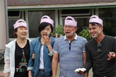 小憩一下,到了午饭时间,大家围坐在木屋度假村外的露天餐桌边,开启欢快的BBQ盛宴。身临紫蓬山,于绿野仙氧间,小伙伴们赏着美景、吃着美食,其乐融融,欢声笑语不断。其间穿插了北城项目公司3、4月份员工的生日会,再次体现了公司的人文关怀,令大家感受到万象城平台,万象城(中国)一站式服务平台大家庭的温暖。