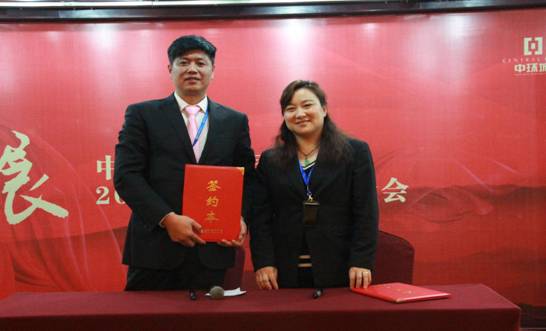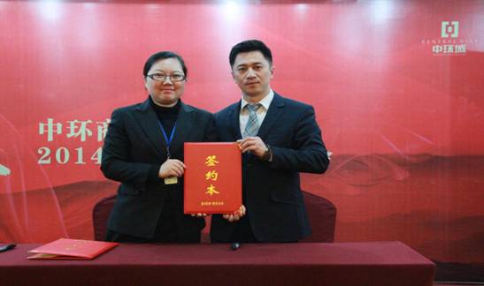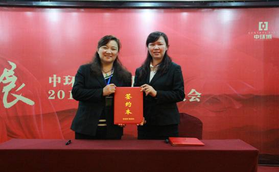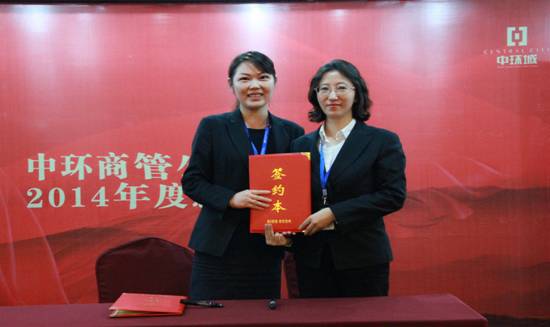商业管理公司总经理朱玉娟与行政人事企划副总经理赵晖签订目标责任书