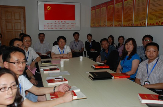 座谈讨论抒发豪情。党课结束后,全体党员和入党积极分子围绕喜迎建党90周年进行了座谈讨论。党员姚金嫚、陈勇、曹树勇、张国伟、杨振波、李锋等同志先后发言。他们认为今天的活动很有意义,重温誓词、赠《建党伟业》书籍、观看党史教育片,就是要我们学习、继承和发扬党的光荣传统,践行入党誓词,切实履行好新形势下共产党员的职责和使命。当初我们选择了入党,就要坚信党的领导,听党话,跟党走。虽然我们是在民营企业工作,但要自觉地坚持把“党的要求”、“企业追求”和“社会需求”有机统一起来,努力为推动企业科学发展贡献力量。入党积极分子冯佐军、朱玉娟等同志发言,表示要努力学习党的先进理论和基本知识,学习党的路线、方针、政策,不断提高政治觉悟,坚定理想信念,自觉接受党组织的教育、培养和考验,积极工作,争取早日加入党的组织,成为一名共产党员。