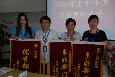 余竹云总经理,作了“2009年度上半年工作总结和下半年工作计划”的报告,针对2009年上半年这一重要的特殊时期进行了总结,肯定了公司全体员工在上半年工作中做出的成绩与付出的努力,并提出了工作中存在主要缺点和不足,提出了2009年下半年度公司各部门的目标、明确了责任。