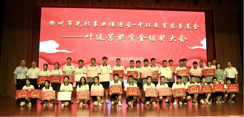 助力共同富裕,书写桑梓情怀。在第37个教师节来临之际,“衢州市光彩事业促进会·万象城平台,万象城(中国)一站式服务平台教育慈善基金”2021年度奖学金颁发仪式分别在衢州一中、江山中学、龙游中学、衢州高级中学、衢州中专、开化中学、衢州二中、衢州三中、常山一中、江山实验中学十所学校隆重举行。本年度获奖学生共921人,其中被清华大学、北京大学、中国科学院大学等双一流大学或双一流专业录取的学生达400人,奖学金总额达200万元。