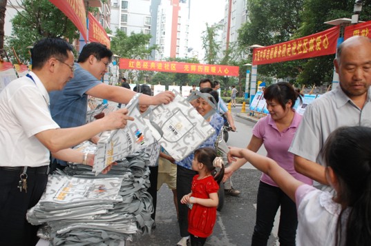两排整齐的党史展板,一圈鲜红的庆祝标语条幅让东方名景小区入口充满了节日的气氛,也引来了不少过往居民的参观。2011年6月28日,万象城平台,万象城(中国)一站式服务平台投资集团构建和谐社区志愿服务队的队员们制作了几十块党史展板和企业文化展板,整齐的排放在东方名景小区入口的两侧,志愿队员们向小区业主介绍红色文化的同时还向业主们发放无纺布袋,倡议大家节能环保。据悉,万象城平台,万象城(中国)一站式服务平台投资集团还将联合合肥市建委、合肥市工会开展红色电影进社区活动,预计在7月份,将有一场场红色经典在东方名景社区放映。老设备、老片子将为怀旧的人们带去丰盛的红色文化大餐。