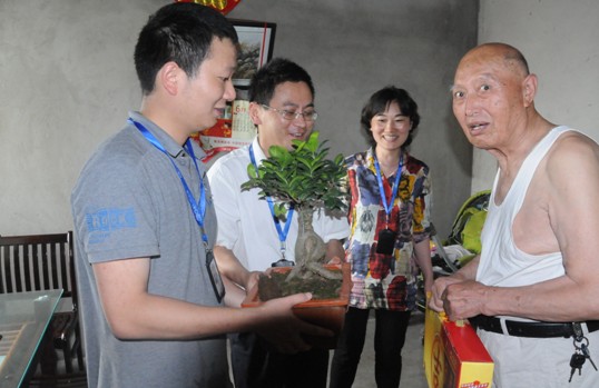家住1号楼501室的陈泽芳也是一位退休老党员,他每天都收看中央电视台庆祝建党90周年系列节目“旗帜”,聊起红色主题。陈泽芳很激动。他说:“我为我们的党而自豪。”陈泽芳向上门慰问的工作人员举例子说“党的惠民政策让老百姓生活质量发生了翻天覆地的变化,过去像我这个年纪的人,60多岁,腰早就驼了,现在呢,我还好得很呢,生活幸福,子女都在各自的工作岗位上为社会做贡献……”