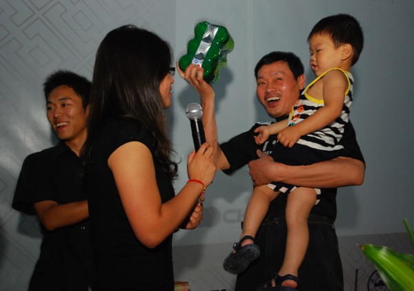 仪式上,围绕广场上展出的党史知识,还进行了党史知识问答。“答对了,奖励2听啤酒、一包花生米,答错了,现场‘吹’掉一瓶啤酒。”农民工们纷纷举手,踊跃答题。