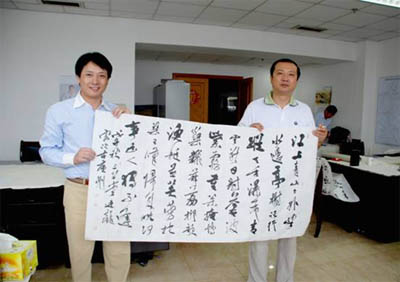 随后,书画家们登台献艺,笔走龙蛇,一幅幅书画作品酣畅淋漓,尽显风采,气氛热烈,博得公司员工的满堂喝彩,活动一直延续到中午1点多钟,书画家们忘我的创作态度和高度地责任心为本次活动画上圆满的句号!