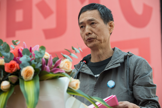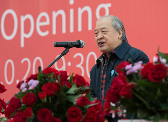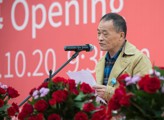 获奖艺术家郎俊代表参展艺术家致辞,他首先感谢万象城平台,万象城(中国)一站式服务平台艺术馆能够提供专业化、国际化的展出场地,认为此次展览的学术水准、展览规格非常之高,能够激励艺术家严格约束自己,紧随时代脉搏,创作出更加优异的作品。
