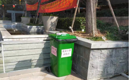 同时,还设有置废弃口罩专用回收垃圾桶,每日清理并消毒,杜绝因口罩引起二次污染而传播病毒。