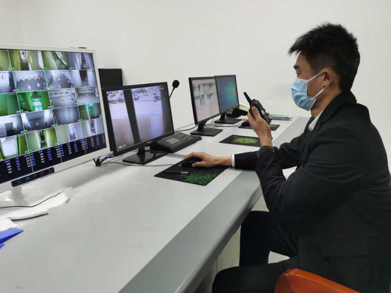 图 | 艺术馆安保主管童宣保通过场馆监控,实时掌握各区域消杀工作动态