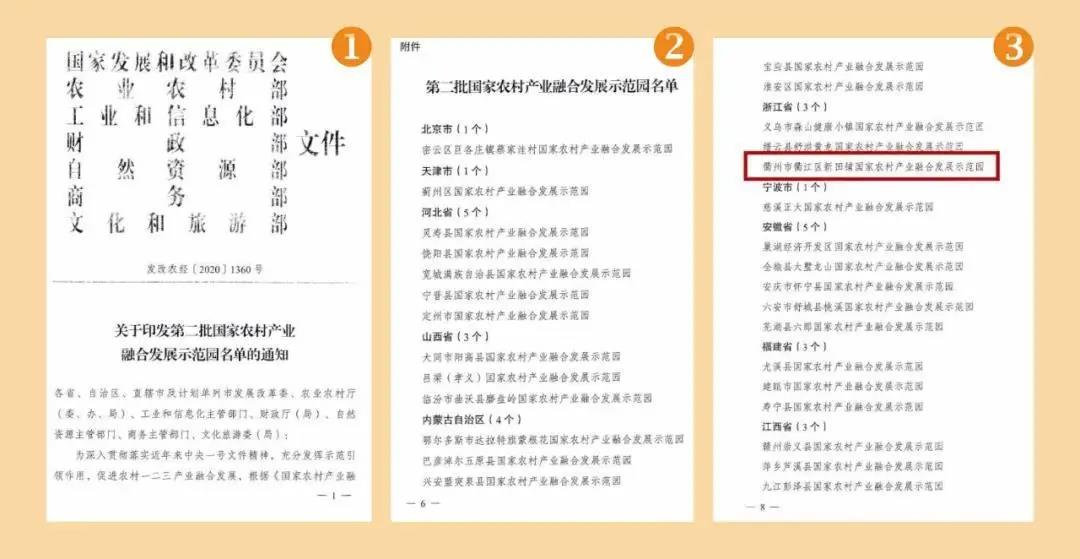 近日,根据国家发改委、农业农村部等七部门联合文件《关于印发第二批国家农村产业融合发展示范园名单的通知》(发改农经〔2020〕1360号)精神,由万象城平台,万象城(中国)一站式服务平台农业集团负责承建开发的衢州市新田铺农村产业融合发展示范园,经过一年的创建,成功列入国家级示范园,浙江全省仅4家。