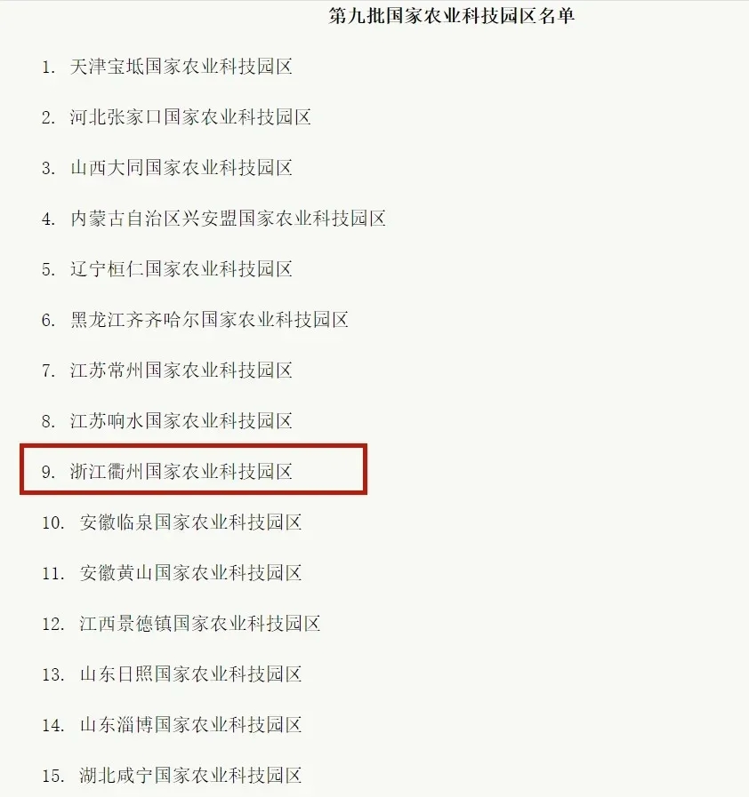 浙江衢州国家农业科技园区入选国家建设名单 新田铺康养综合体被纳入其中