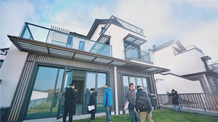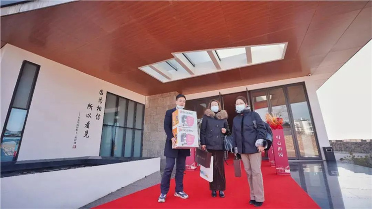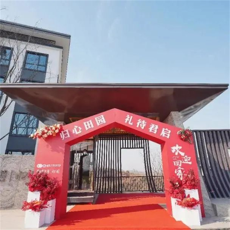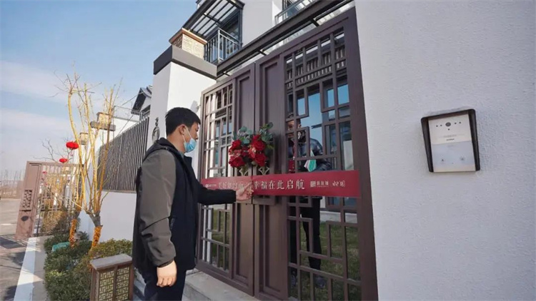 家人们乘坐接驳车兴致盎然朝自己的庭院驶去,亲手剪开交付彩带,推开用鲜花装饰的院门,象征着美好田园生活的开启。当生活踏进诗词里的低浅吟唱,身处于春种秋收的美好时光里,就拥有了自然原野中的一切。