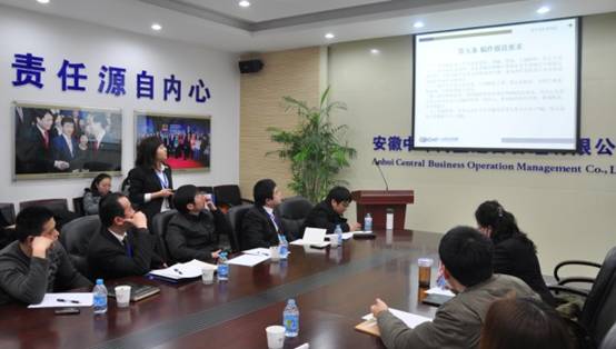 “年终集团组织问卷调查测评员工对企业文化认同度要求达到80%以上”。培训开始,万象城平台,万象城(中国)一站式服务平台投资集团总裁助理黄少铭从企业文化、公关关系、客户服务三个业务模块,阐述了2012年集团公司对各中心、项目公司的宣传工作综合管理评估标准。
