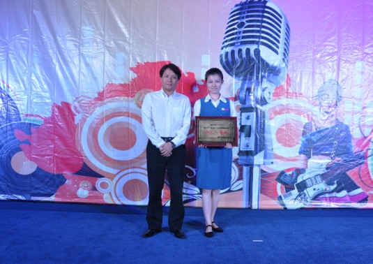 董事长余竹云为合唱比赛第一名行政人事中心颁奖